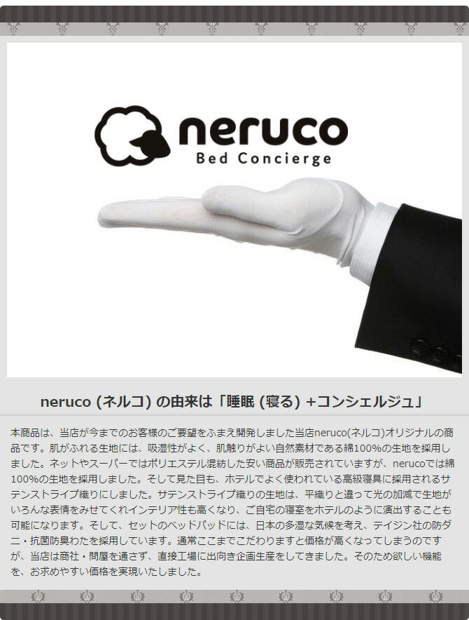 neruco (ネルコ) の由来は「睡眠 (寝る) +コンシェルジュ」 本商品は、当店が今までのお客様のご要望をふまえ開発しました当店neruco(ネルコ)オリジナルの商品です。