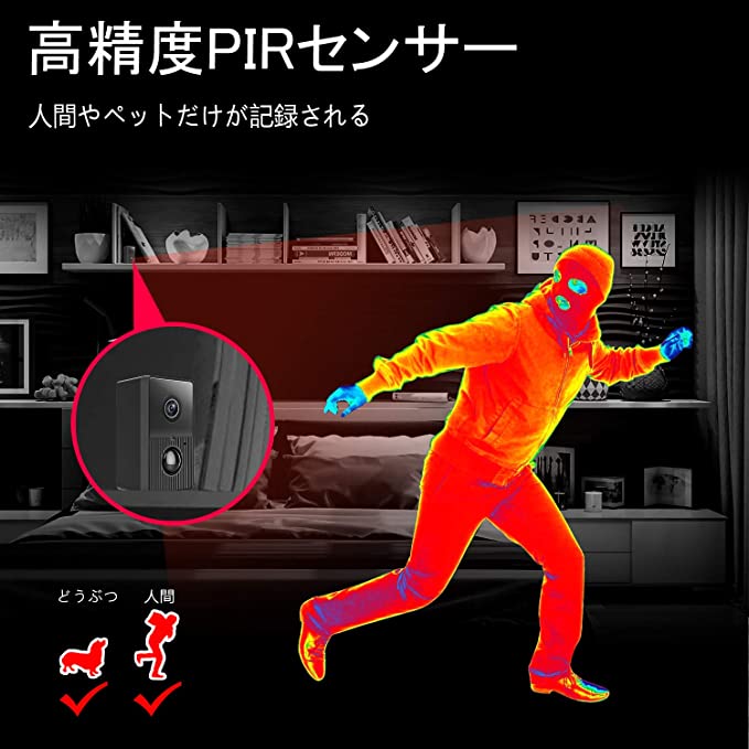 【人体/動物検知録画】:スマートなPIR人感センサーが搭載し、人体や動物を熱感知する時だけ録画し。