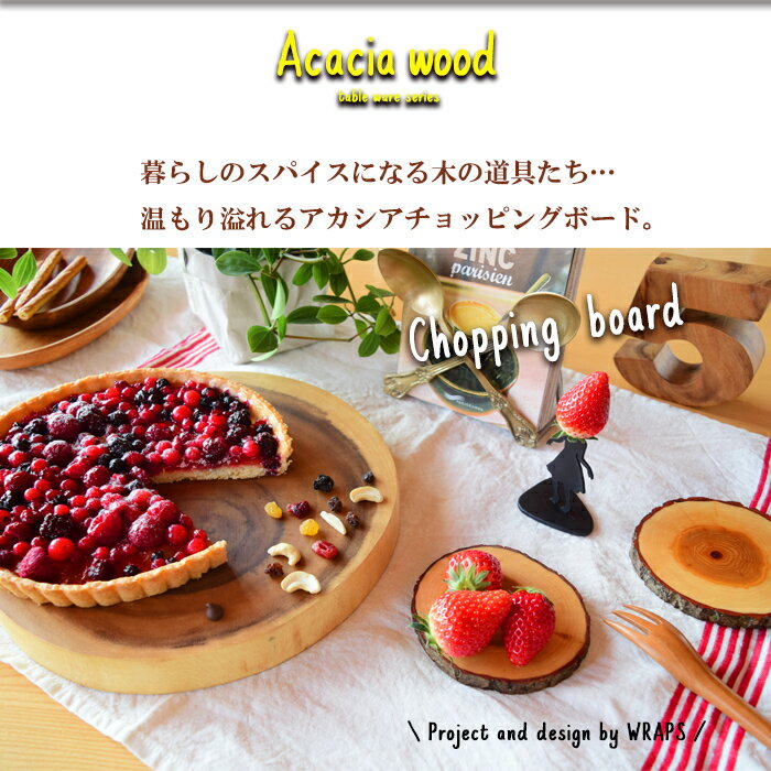 ほっこりあたたかな木材アカシアウッド使用! 横切りカットだからこそ見える表情をお楽しみ下さい。