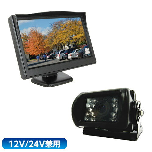 12V/24V 5インチ ミニ オンダッシュモニター + 暗視バックカメラ / LED 夜間 赤外線 車載 トラック セット 12V