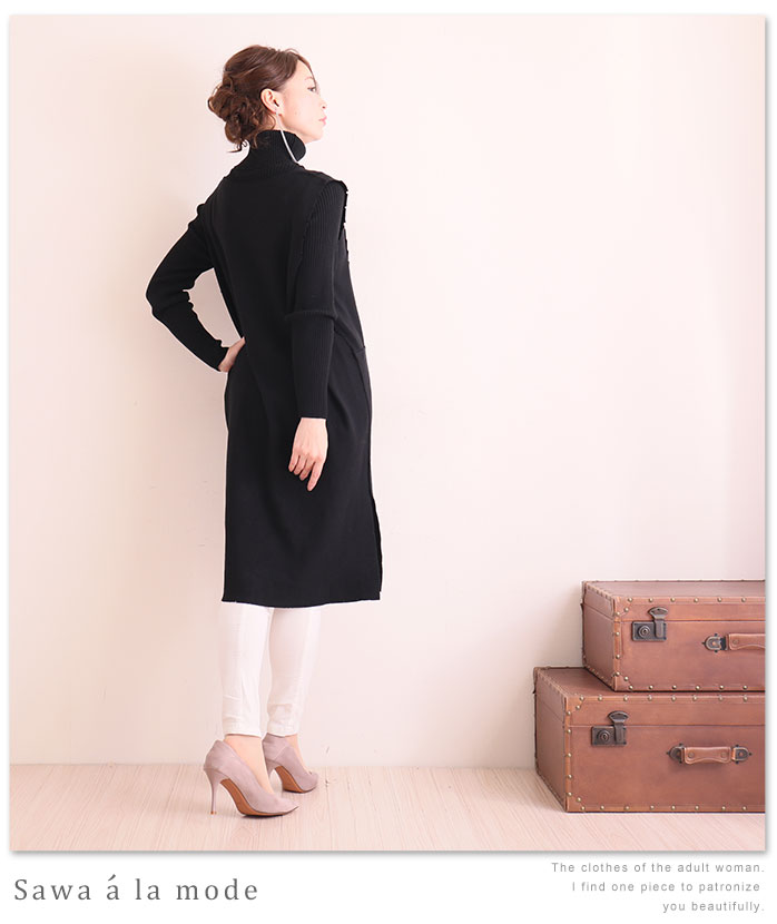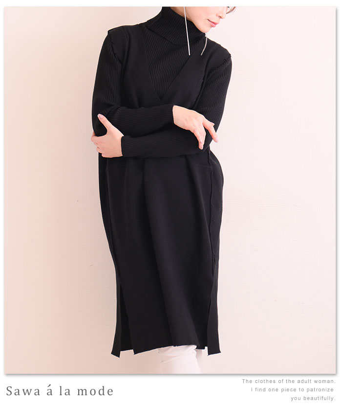 リブタートルとお洒落なニットベストのアンサンブル。レディース ファッション トップス ニット ブラック ベスト アンサンブル 春 秋 冬 オフィスカジュアル 体型カバー 同窓会 およばれ 綺麗目 大人 カジュアル サワアラモード otona kawaii