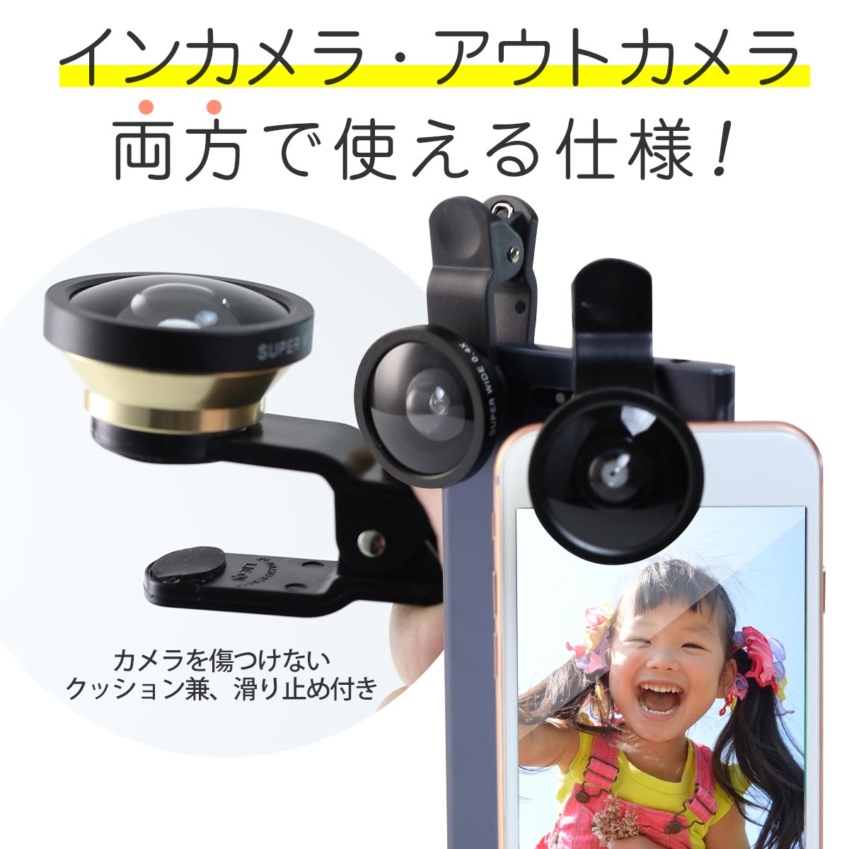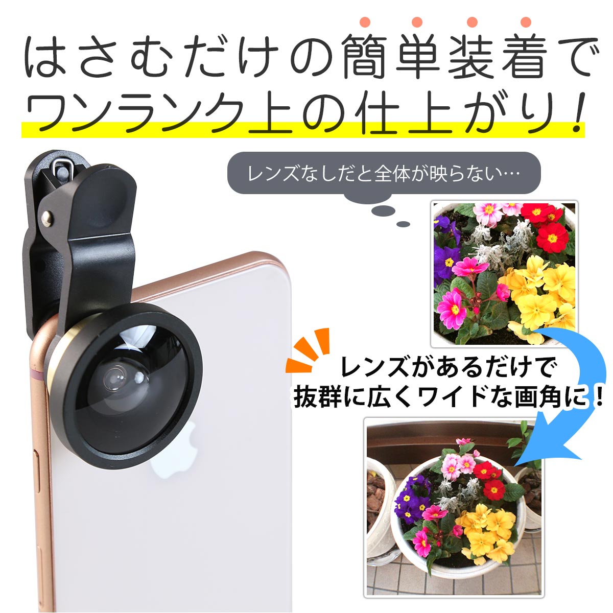 商品名称 スマホ用クリップ型魚眼レンズ 適応機種 iPhone/Android各機種 (一箇所にカメラが2個以上付いていないもの) カラー ブラック レッド ゴールド シルバー マゼンタ 商品説明 はさむだけの簡単装着でワンランク上の仕上がり!レンズがあるだけで抜群に広くワイドな画角に! インカメラ・アウトカメラ両方で使える仕様!カメラを傷つけないクッション兼、滑り止め付き ※お使いのスマートフォンの機種によってケラレが出る場合がございますが、スクエア(正方形)撮影にすることでケラレを消すことができます。