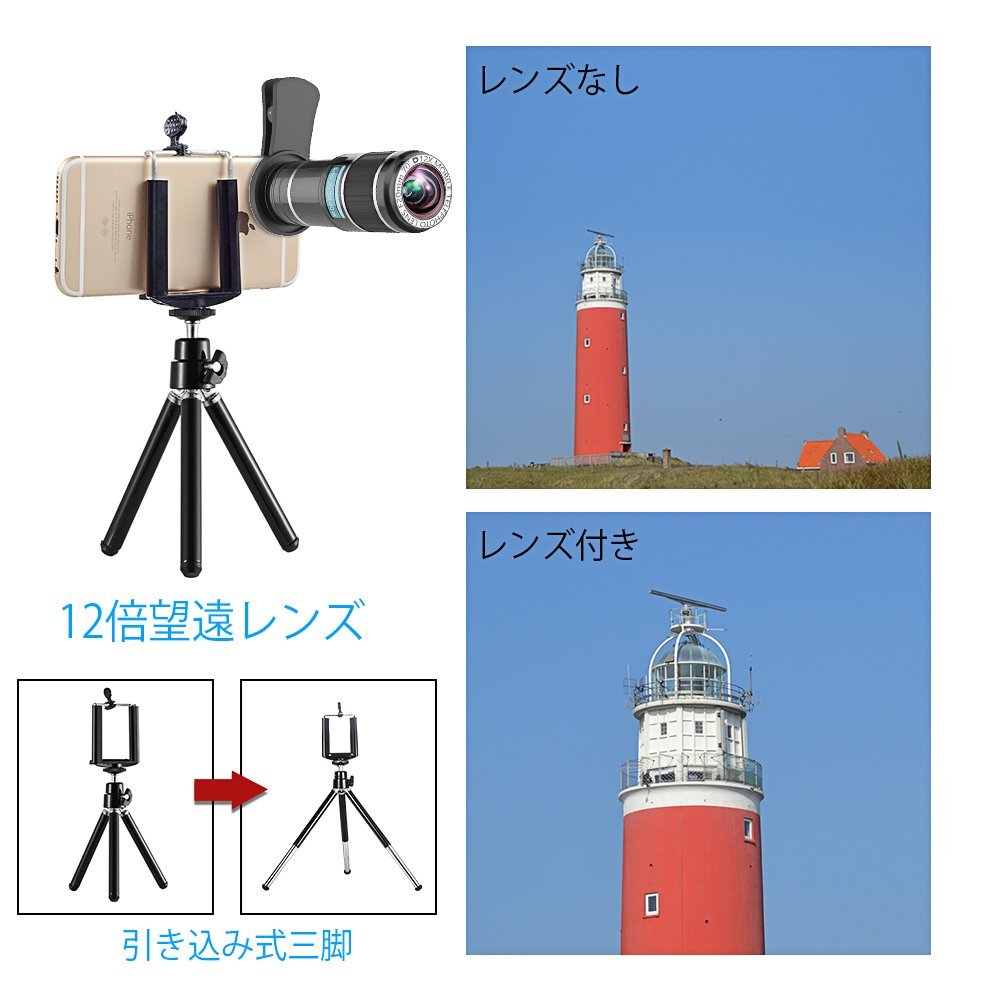 12X望遠レンズ 12倍の望遠レンズは、光学的に画像を12倍に拡大しても画質は低下しません。